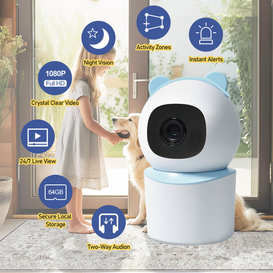 Baby Monitor with 360 Wireless , Nanny Cam, Safety Alerts, 3MP HD WiFi Camera